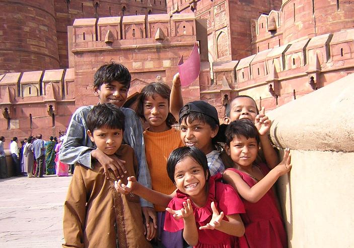 Kids pose for me at Fort near Taj Mahal (Agra)